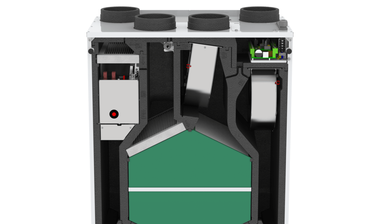 - Mažos energijos sąnaudos – SPI tik 0.302 W/(m³/h).